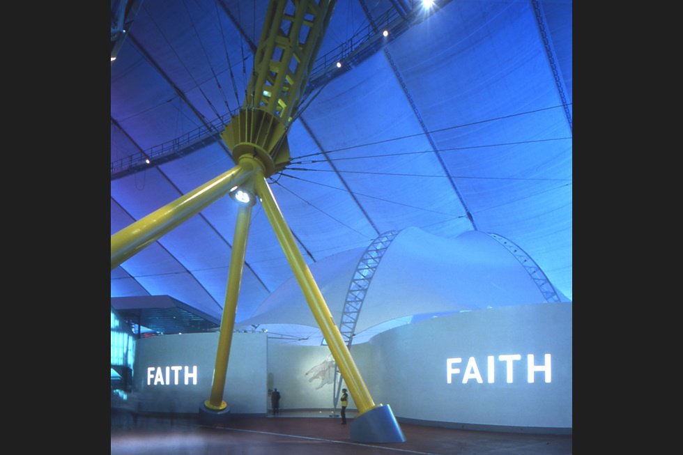 The Millennium Experience was designed to talk about all corners of British life as the year 2000 approached. Faith, the body, transportation, work, learning, the environment, and more were represented - all tied together by a central stage show.