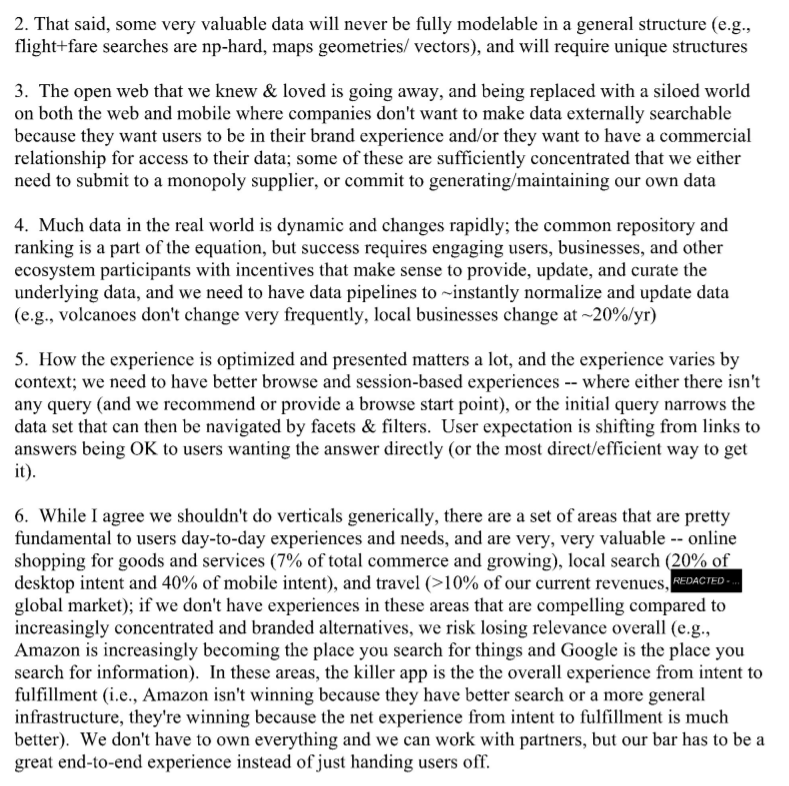 Google worried that if they didn't become the search leader in verticals like travel, local, etc. other companies might be able to compete... And then they talk about how owning general search data gave them a unfair advantage over other players.