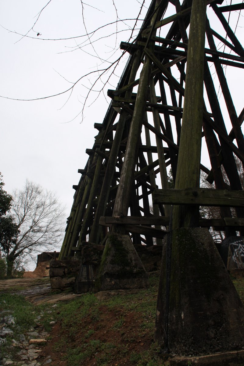 The Georgia Railroad opened the trestle bridge in 1883. This railway ran from Athens to Augusta and began carrying passengers from Athens in 1841—but its station was on the edge of town. The trestle allowed it to run to a station located more centrally.