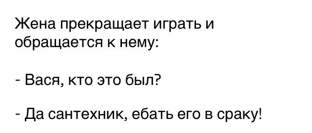 поворачивается к соседу справа: - это не вы сказали "еб твою мать?" - нет поворачивается к соседу слева: - простите, это не вы сказали "еб твою мать? " - нет