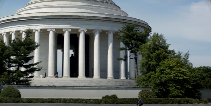 Now he is at the back of the Jefferson, going west. So I guess he took the scenic route on the DC side of the river and did a loop around the whole Tidal Basin. Nice.