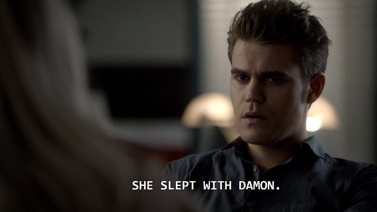 stelena have a mutual break up that stefan initiates bc of elena's feelings for damon, then later on when stefan finds out that she acted on those feelings AFTER they had broken up, he gets so entitled and makes her feel guilty bc she moved on without his say-so, TRASH.