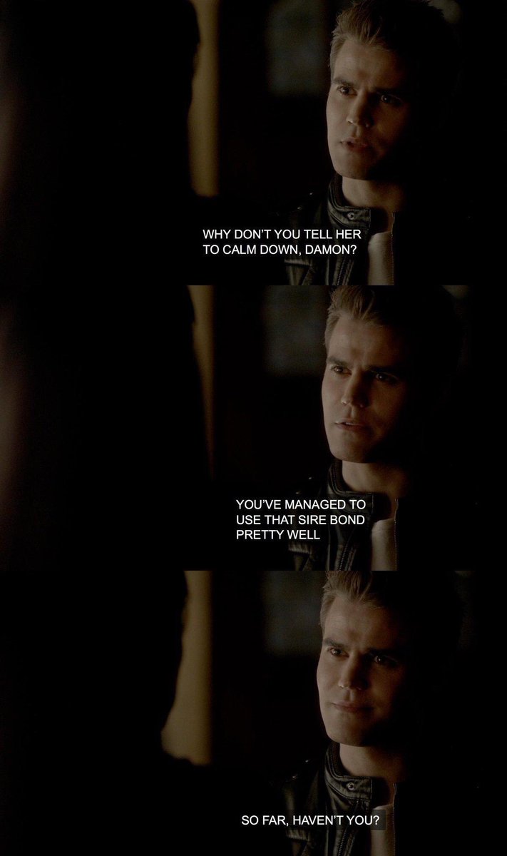 stefan is super condescending, he has this patronizing attitude that reeks of superiority. His little snide comments about damon are so unnecessary. Its literally something he does continuously throughout the show. we get it, u love to belittle people to make yourself feel better