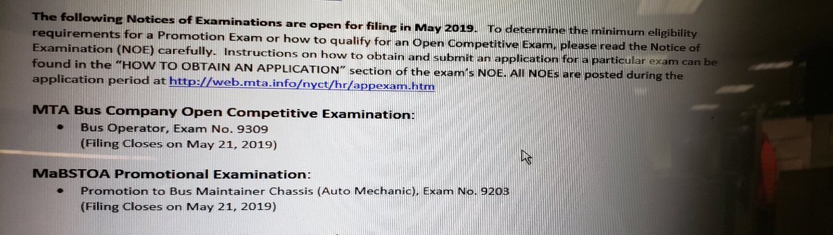 MTA bus driver test is coming up. Filing closes on May 21st.
