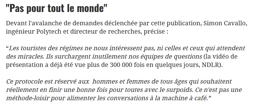 Je ne comprends pas que vous n& #39;en fassiez pas un article entier de cette découverte ? 18kg en un mois ! Fantastique non ? Comment ça peut mal se passer ?