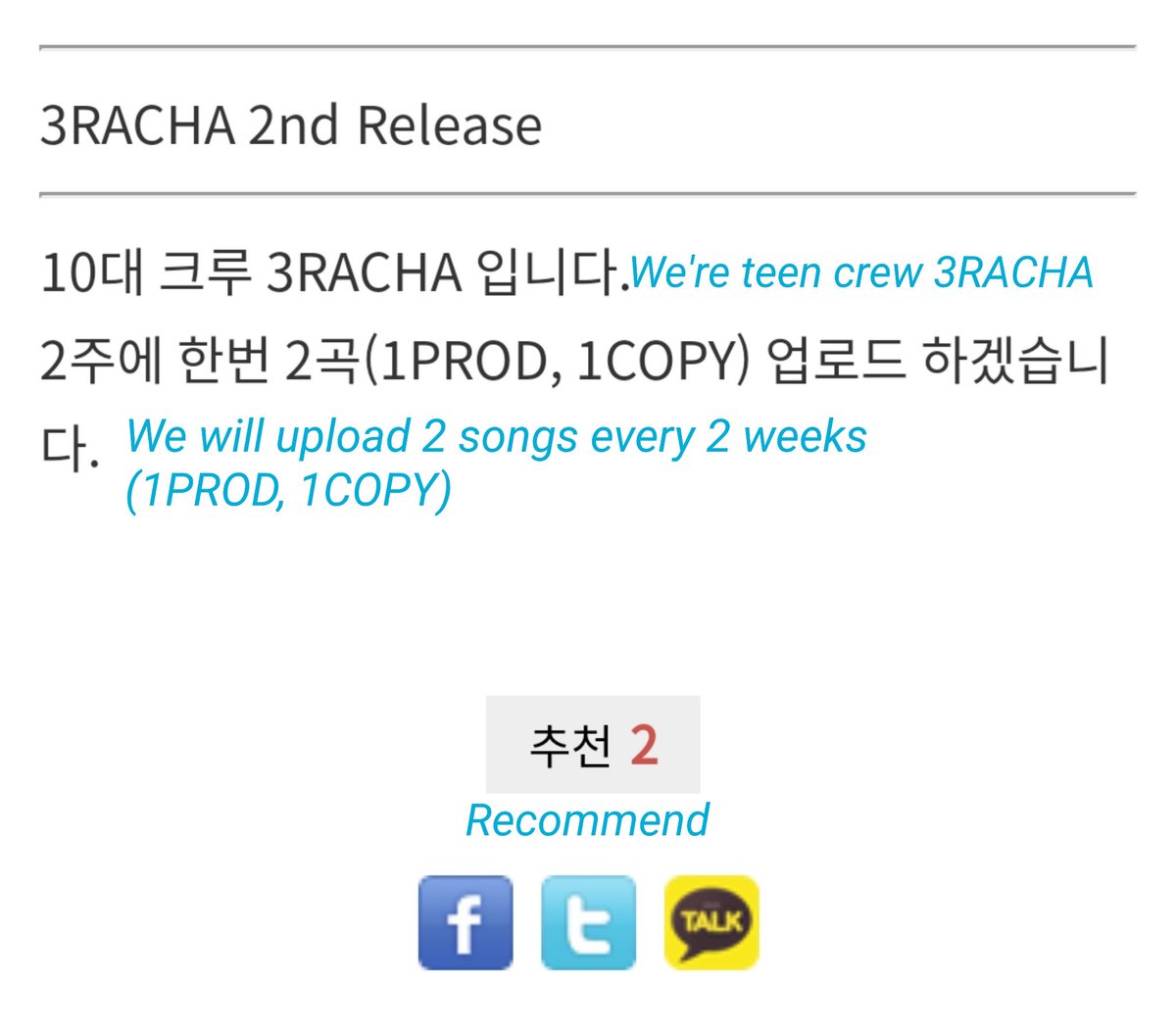Eunseoki (Prod.CB97)https://abs.twimg.com/emoji/v2/... draggable="false" alt="▶️" title="Nach rechts zeigendes Dreieck" aria-label="Emoji: Nach rechts zeigendes Dreieck"> 42There& #39;s an improvement. They started sharing the description of their song and they got 2 comments on this post" title="On 1st March 2017 at 10:02PM KST #3RACHA uploaded their 4th release: https://hiphople.com/9416193&q... 3RACHA 4th Releasehttps://abs.twimg.com/emoji/v2/... draggable="false" alt="▶️" title="Nach rechts zeigendes Dreieck" aria-label="Emoji: Nach rechts zeigendes Dreieck"> Eunseoki (Prod.CB97)https://abs.twimg.com/emoji/v2/... draggable="false" alt="▶️" title="Nach rechts zeigendes Dreieck" aria-label="Emoji: Nach rechts zeigendes Dreieck"> 42There& #39;s an improvement. They started sharing the description of their song and they got 2 comments on this post">