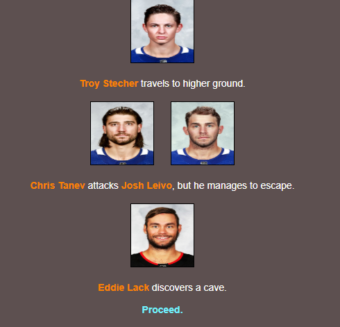 Horvat convinces Edler the only way to survive is to share body heat. Loui continues to be true to life. And once again Eddie Lack continues to be horrible at Hunger Games.