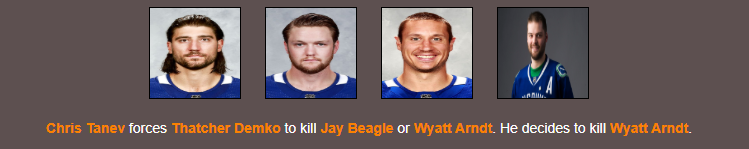 Chris Tanev is fucking ice cold. Also Troy From Richmond doing what he always does: Survive. In a shocking turn of events, EP Loui& #39;s himself to death.