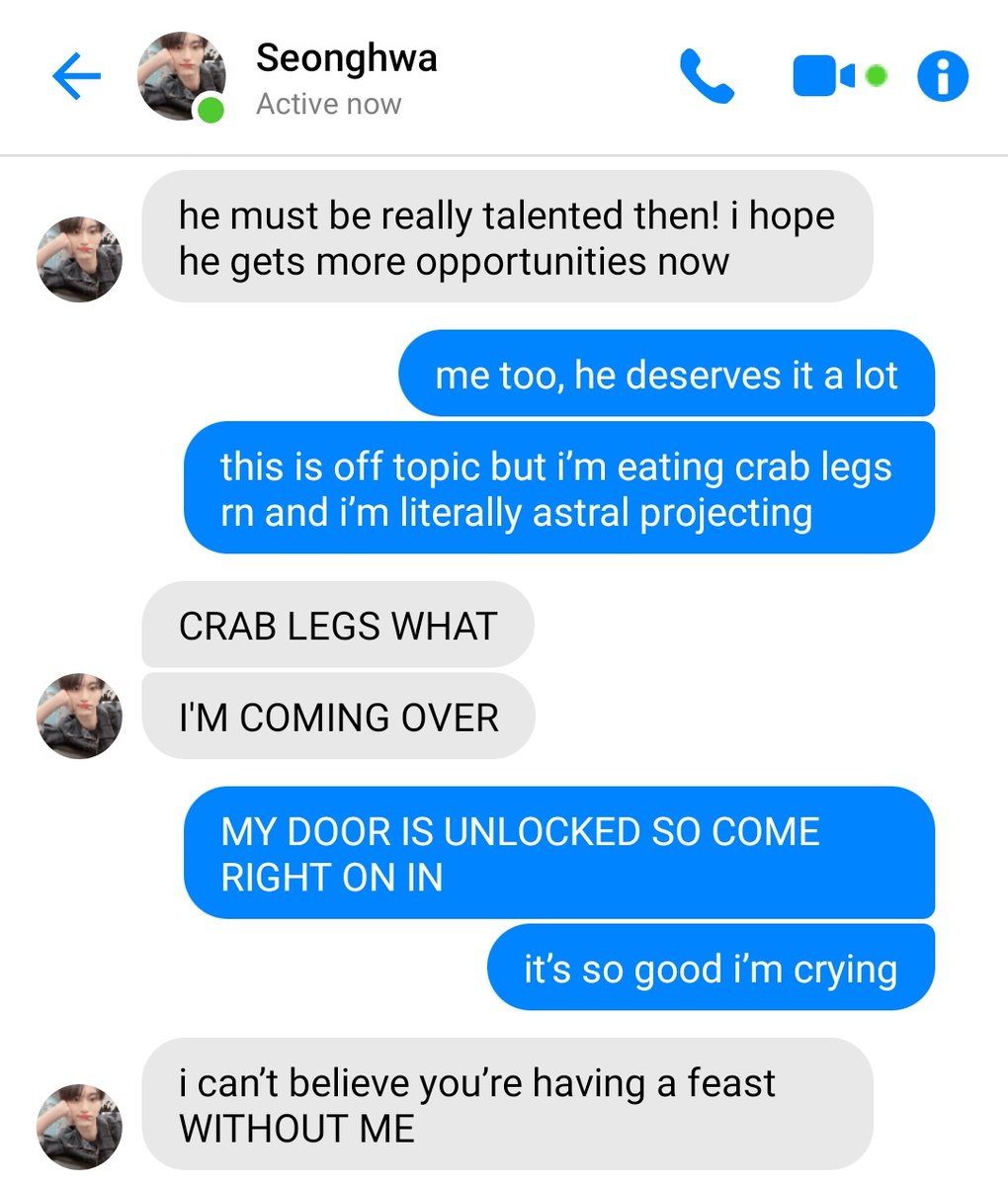 » hongjoong stumbles upon a dating app profile claiming to be the actor park seonghwa. he finds it ridiculous that someone is trying to catfish as a famous actor bc there& #39;s no way it& #39;s the real seonghwa.