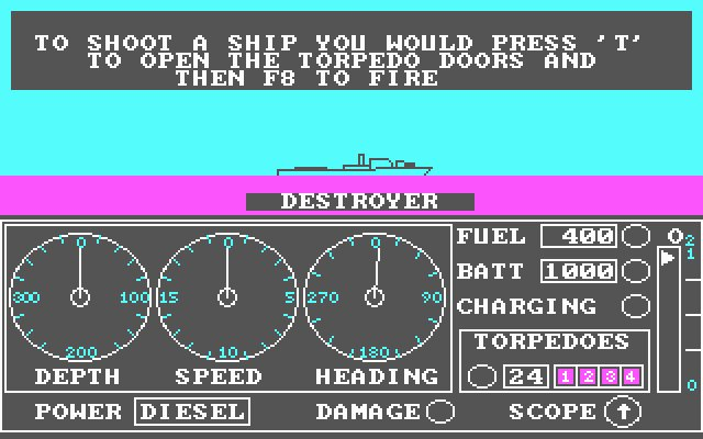 Volvemos al mundo del CGA/EGA y sonidos estridentes desde el PC Speaker, con un juego donde controlamos un submarino.