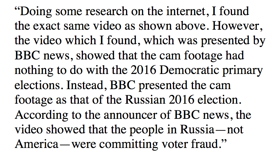 52% of a national sample of 3,446 students said this FB video claiming to show ballot stuffing in the 2016 Democratic primaries was “strong evidence” of voter fraud in the U.S.