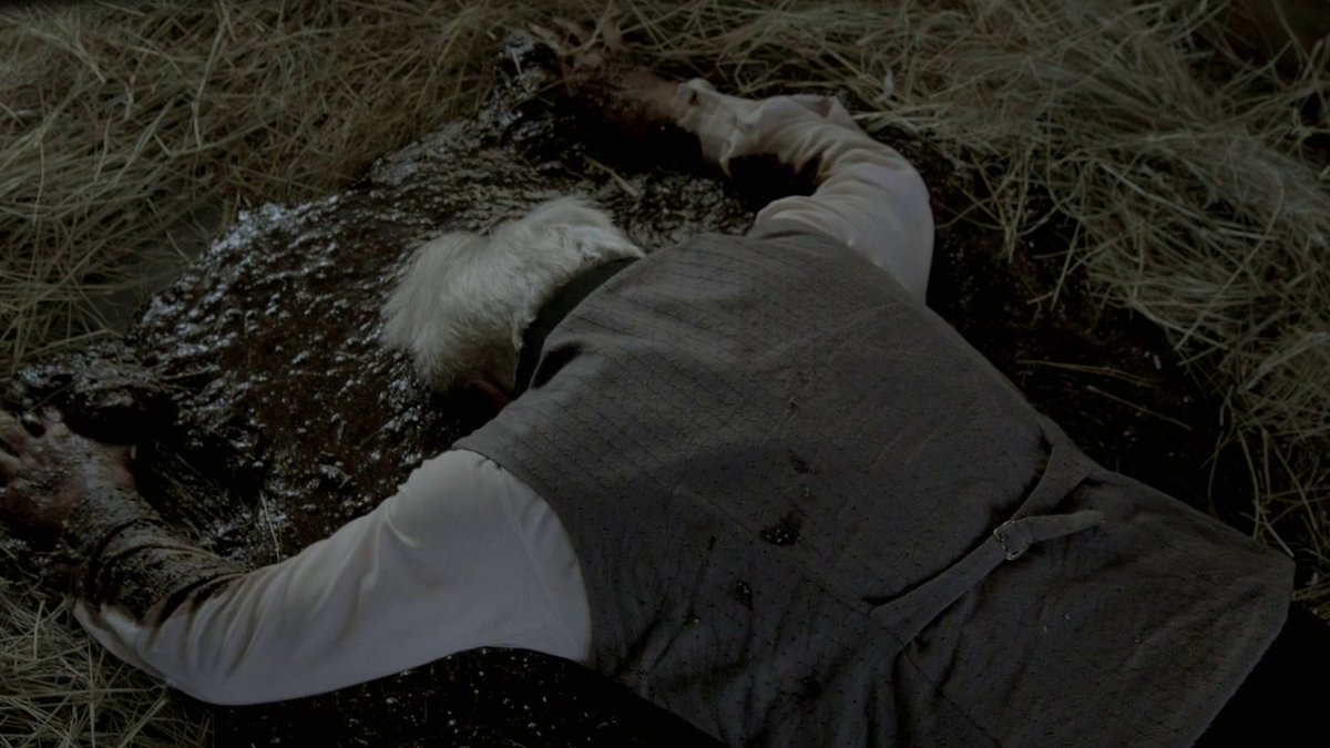 Matthew also has an entire scene chasing after a pig, which is a lot of exercise for an "old" man. The scene ends with the last pic.