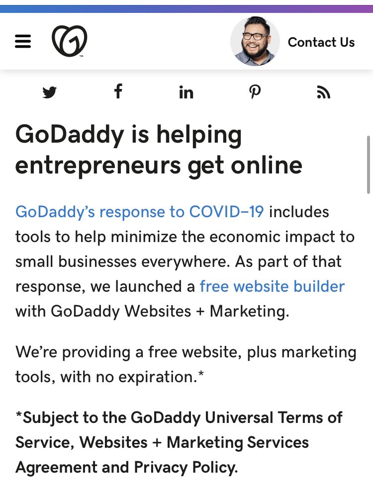 Go daddy is offering its website builder with built in marketing tools - email marketing, one-time appointments, SSL, and PayPal. It also includes a gift card widget