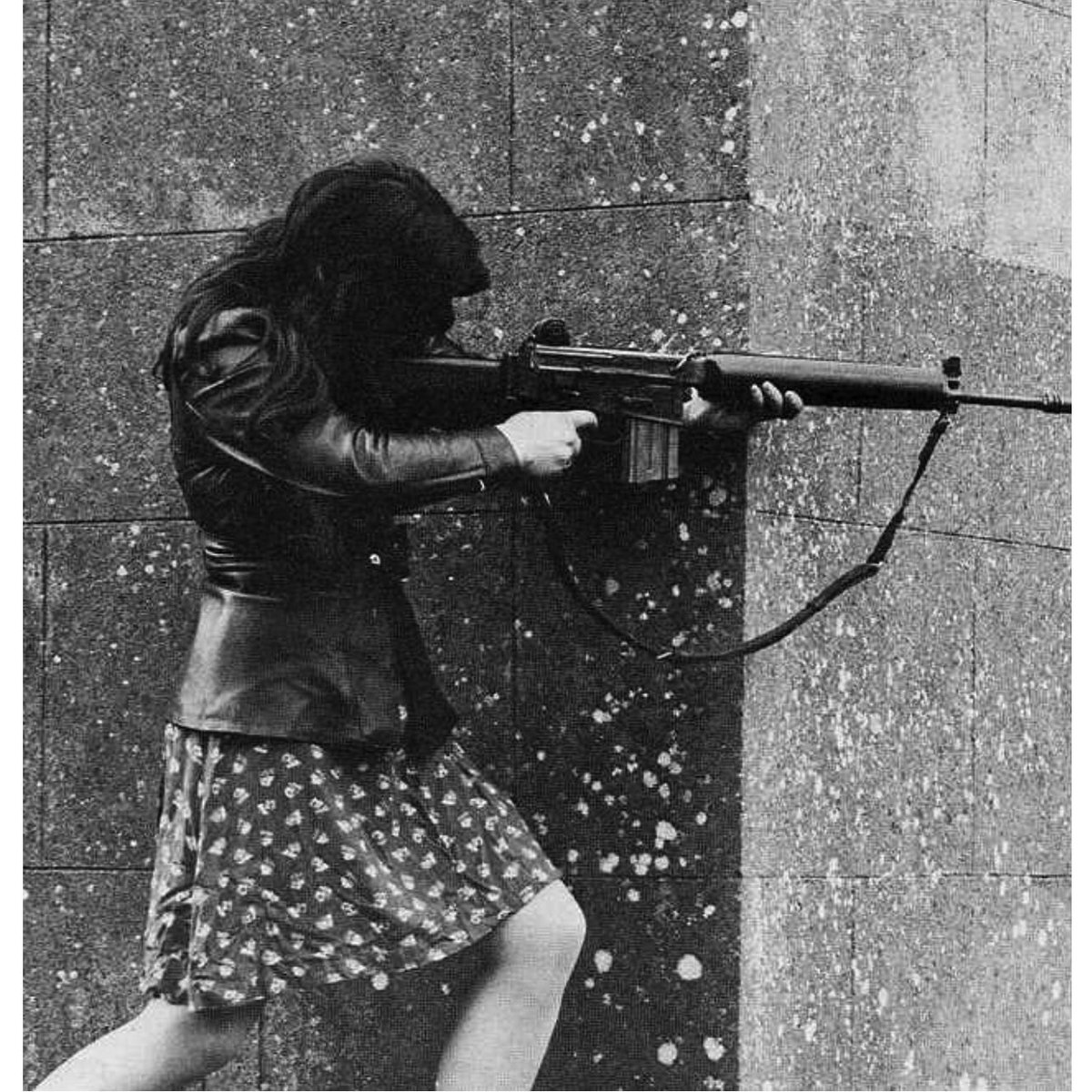 Cumann na mBan still exists, though long proscribed by the UK government as a terrorist organisation. In this pic by Colman Doyle, a CnamB fighter fires at British soldiers in Belfast, 1972.