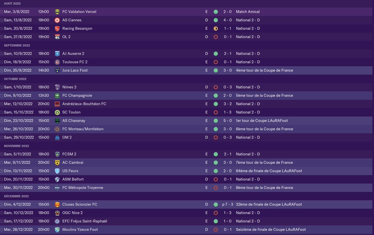 Le début de saison est mitigé mais bcp de recrues sont arrivées en octobre donc ça laisse de l& #39;espoir. La montée devrait se jouer entre Toulon, Andrézieux et nous.