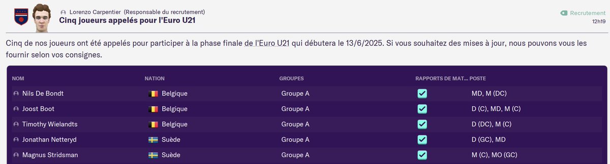 5 joueurs convoqués pour l& #39;Euro U21, 2 pour la Coupe du Monde U20. Plaisir.