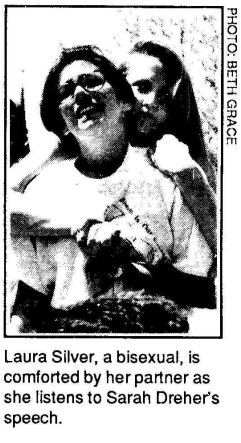 Meanwhile, longtime bi activist Loraine Hutchins made a glorious speech at the 1992 Northampton Lesbian Gay and Bisexual Pride March: