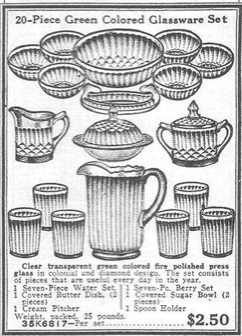 Thread: Depression glass was the first glassware in American history to be produced by a completely automated process without the need for glassblowers, so the major glass companies could sell complete 20âpiece dinner sets for as little as $1.99