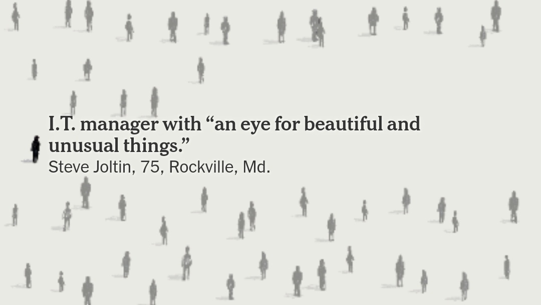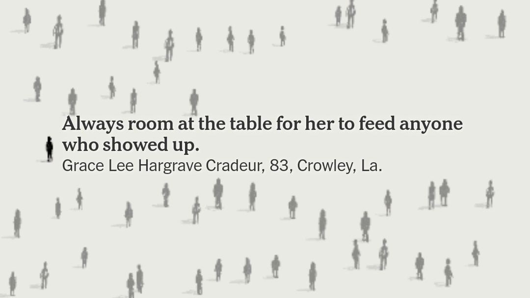 It took me all afternoon to scroll through these, and I only posted the few that stuck with me. There were hundreds of obituaries to read through, every one of them with loved ones. Life is so much more than work and the day to day. Hug your loved ones and stay safe.