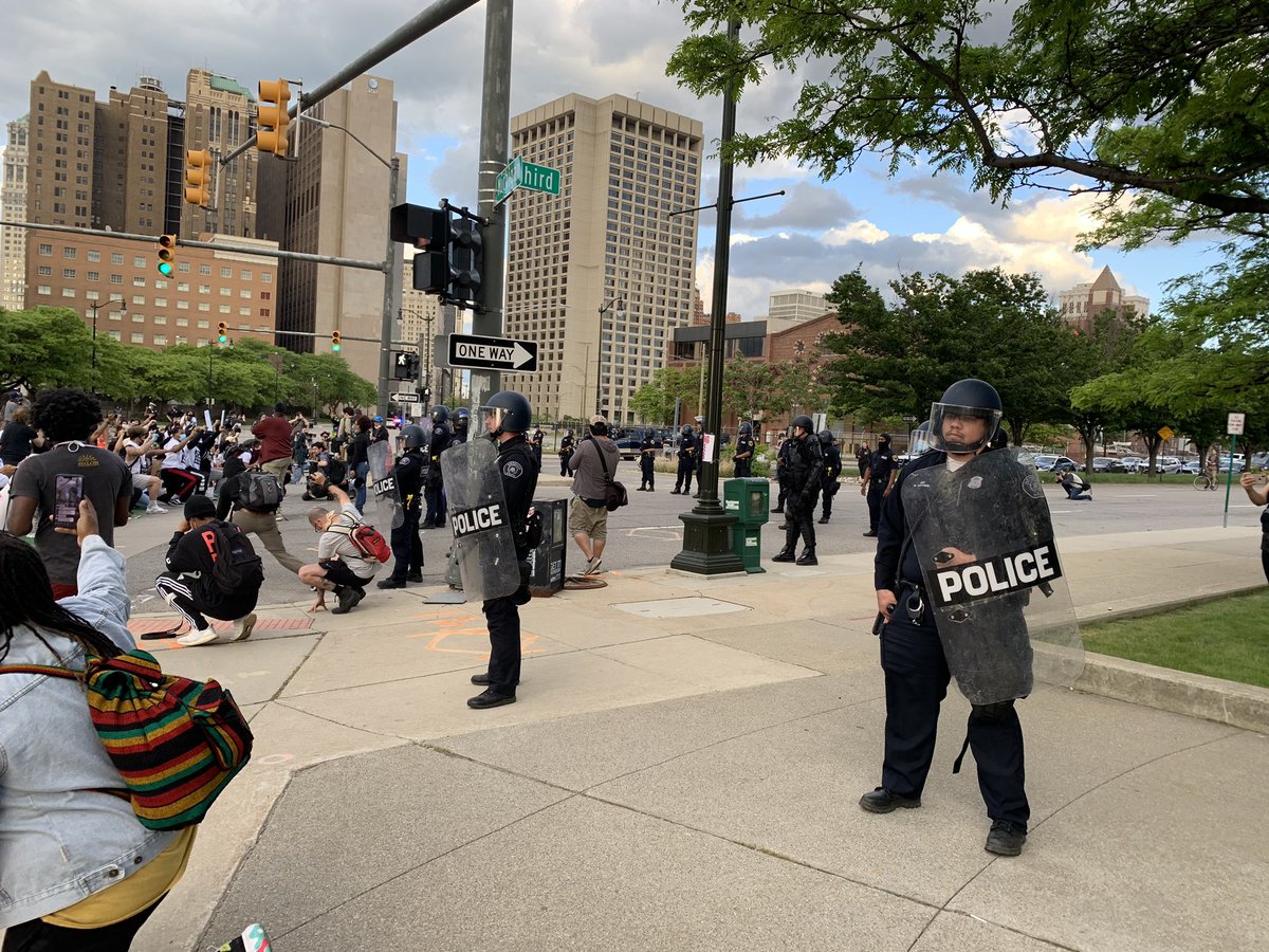 DPD just pushed all the protesters out of downtown Detroit and are sealing off the perimeter. Grand River is the next street over. I can see Cass Tech. Must be dozens of arrests. Hundreds of cops.