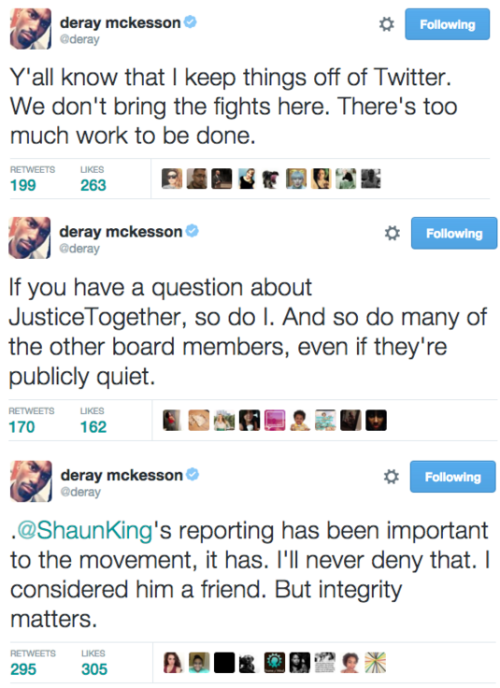 #JusticeTogether was going left before it even launched officially. Regardless of what Shaun says NOW, the reason he and Deray fell out was bc Shaun went on the defensive @ JT ops and $$.