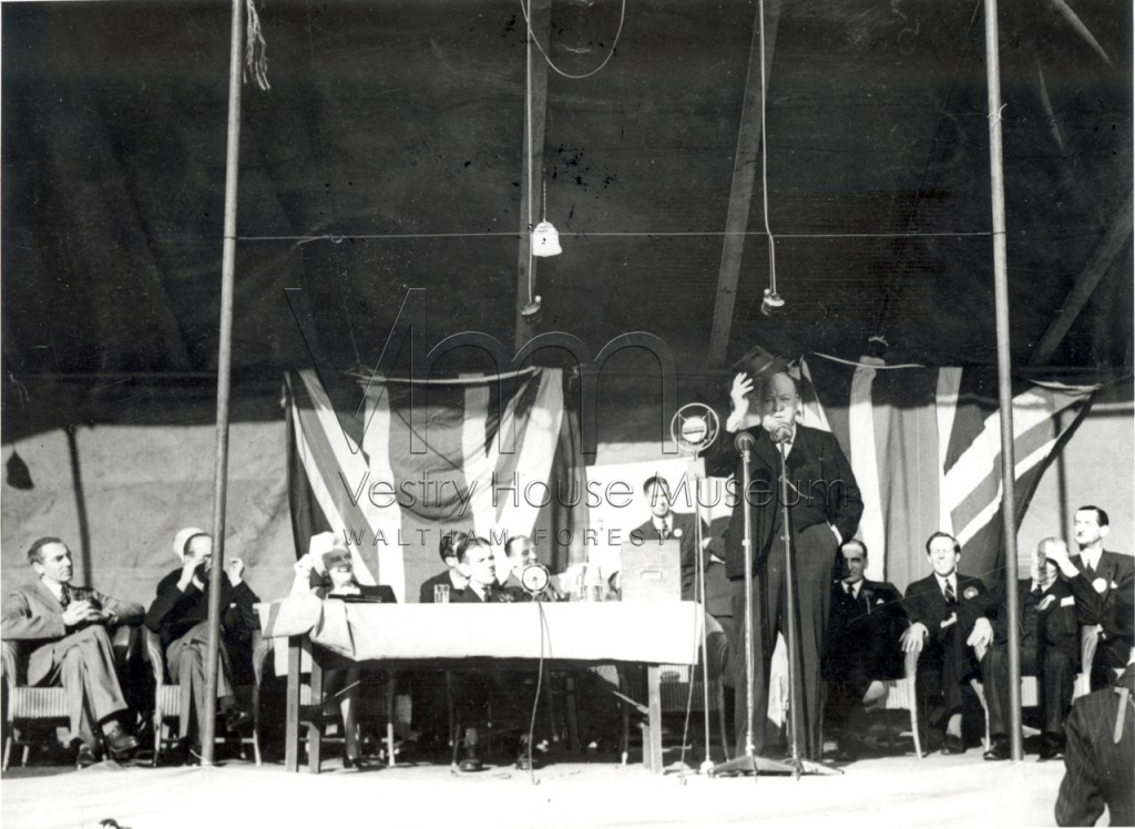 A large section from the left of the crowd began to chant ‘We want Labour’. Churchill responds ‘That is exactly the cause – we wanted Labour’.