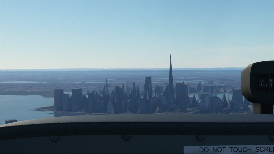 The Microsoft Flight Simulator AI is trying its best to fill in vertical information, but "water is flat" is evidently not an insight it has available.