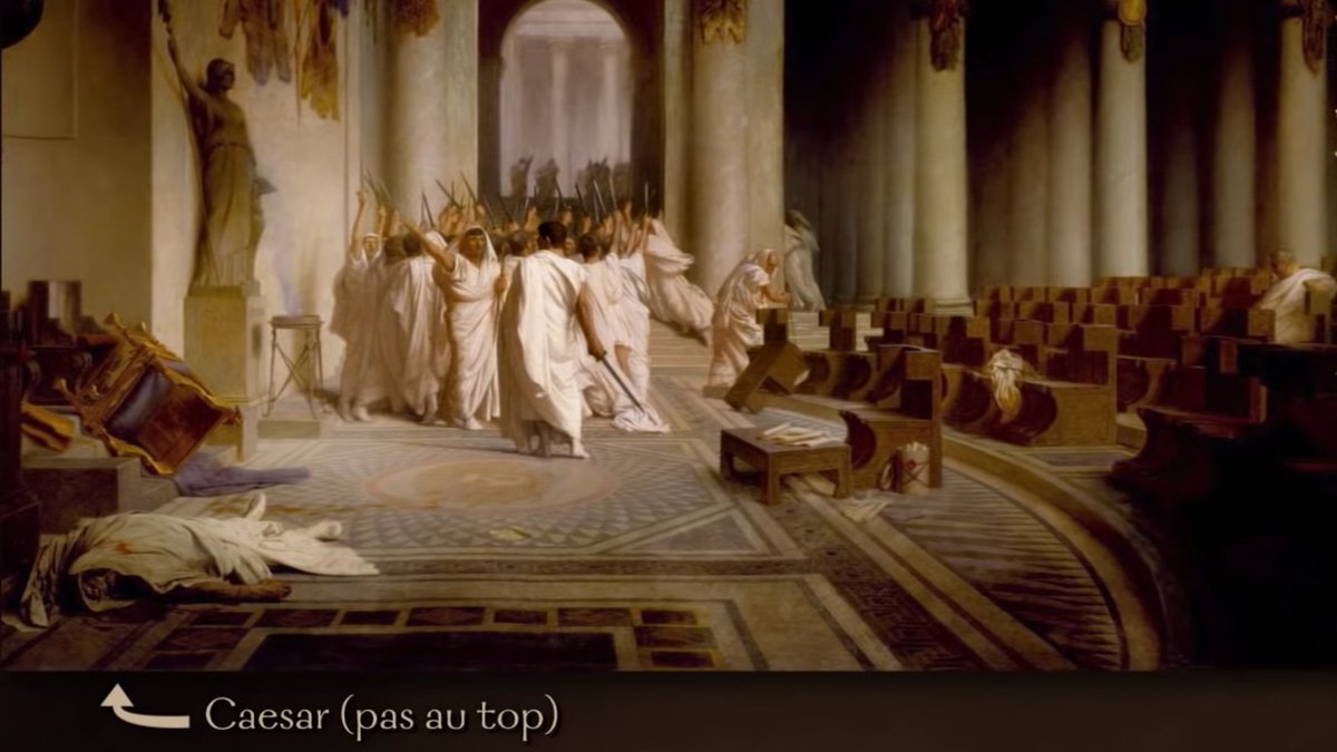 Parmi ces conspirateurs comptent Cassius, une importante figure politique, et même Brutus, avec qui César est proche depuis l& #39;enfance (César étant l& #39;amant de la daronne de Brutus).