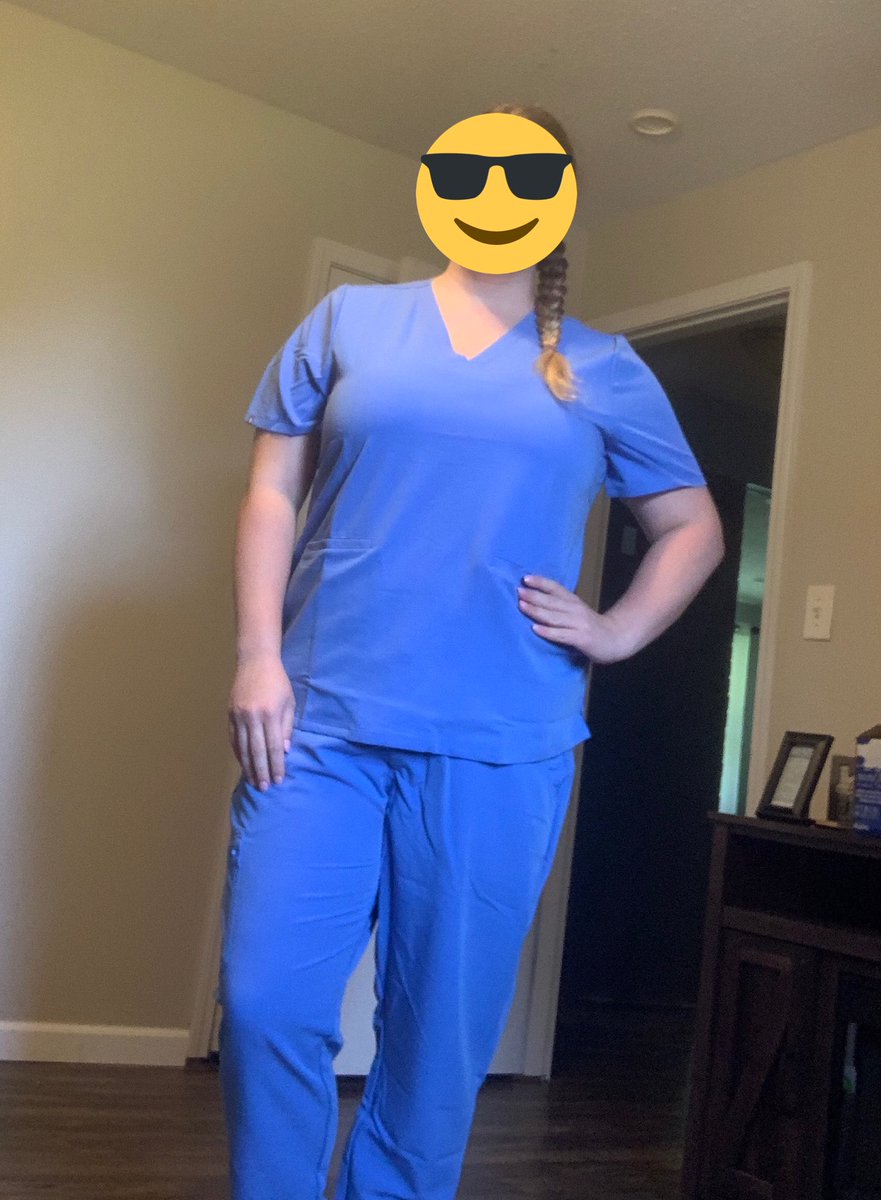Tops: the chest is tight, but I can’t say I’m surprised. I have this issue with every scrub top. I do like that it is flattering and gives me a nice body shape instead of the typical boxy shape you get with no form factor on the lower parts of a top with a large chest.
