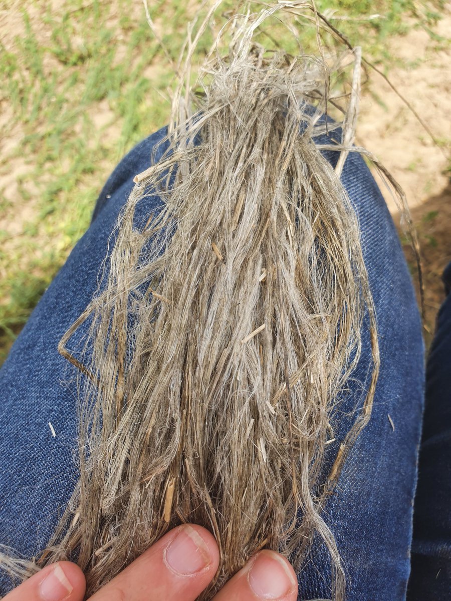 Par ex, pour la variété Elicsir, qqes fibres manquent encore de rouissage.