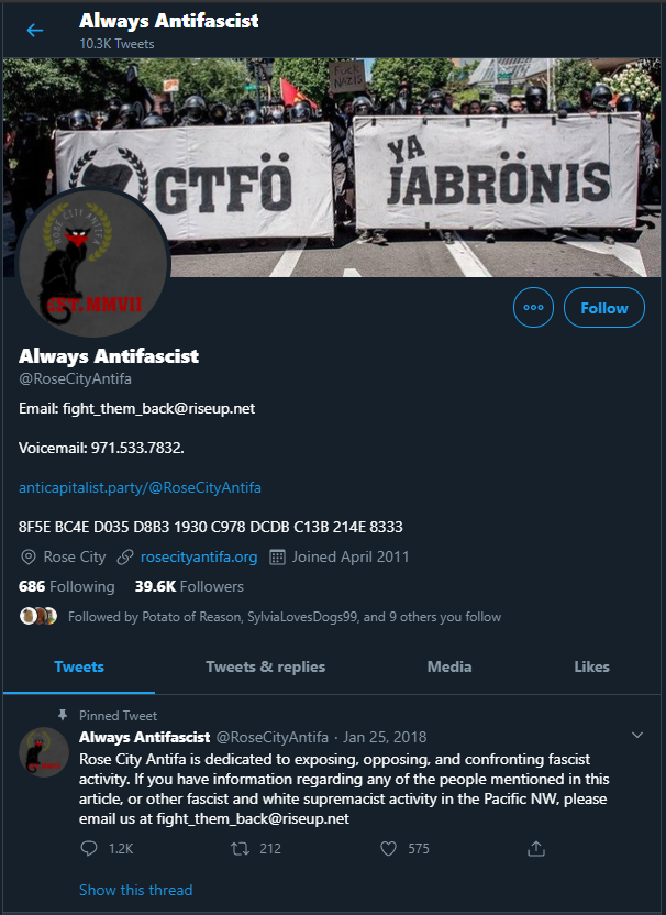 They posted an email address in the GFM description, on the same domain as Rose City Antifa. http://Riseup.net"> http://Riseup.net is based in Seattle from what I found on their website. So here are the links to the GFM, and the riseup site, and the email addresses for GDC, and RCA.