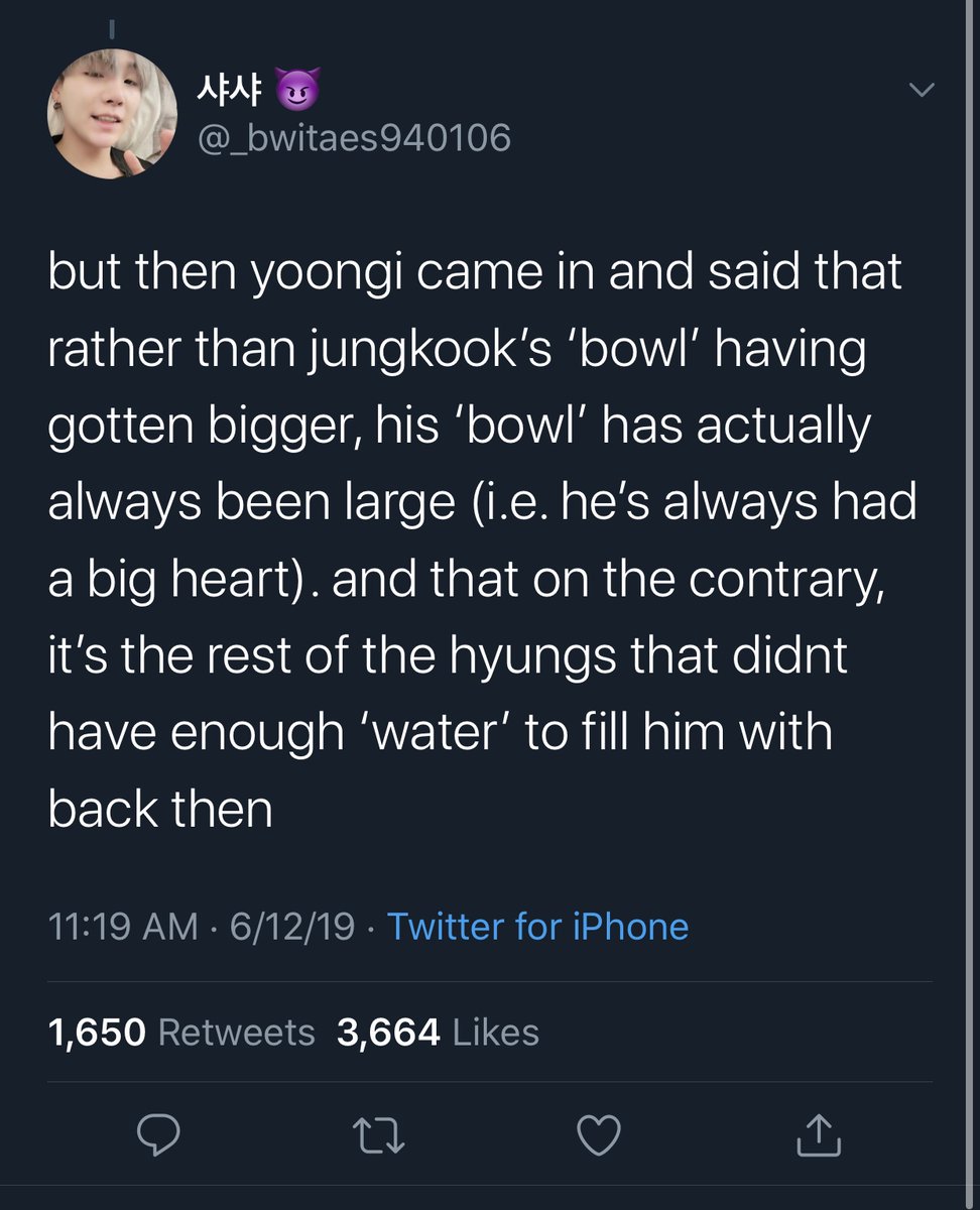 motivated by joonie and chose BH, instead of many other big companies who had made an offer to him. Jungkook makes hyungs laugh bec of his sense of humor and how good he is at impressions. Yoongi said Jungkook& #39;s bowl has always been full, it was hyungs who were unable to