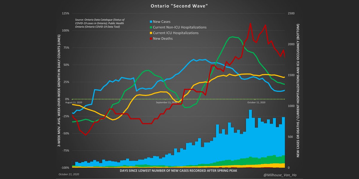 Data also suggests a potential peak or plateau in Ontario, albeit later than Québec.