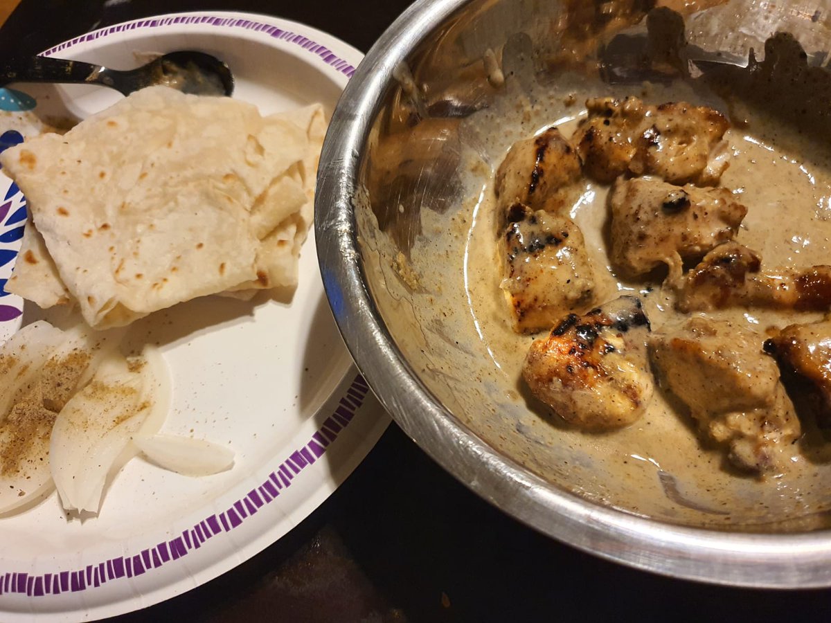 I& #39;ve been craving Aslam Chicken for weeks now. So I had to take a crack at it. The SO made Rumali Roti at home. And I made that chicken and butter-cream-chaat masala gravy.