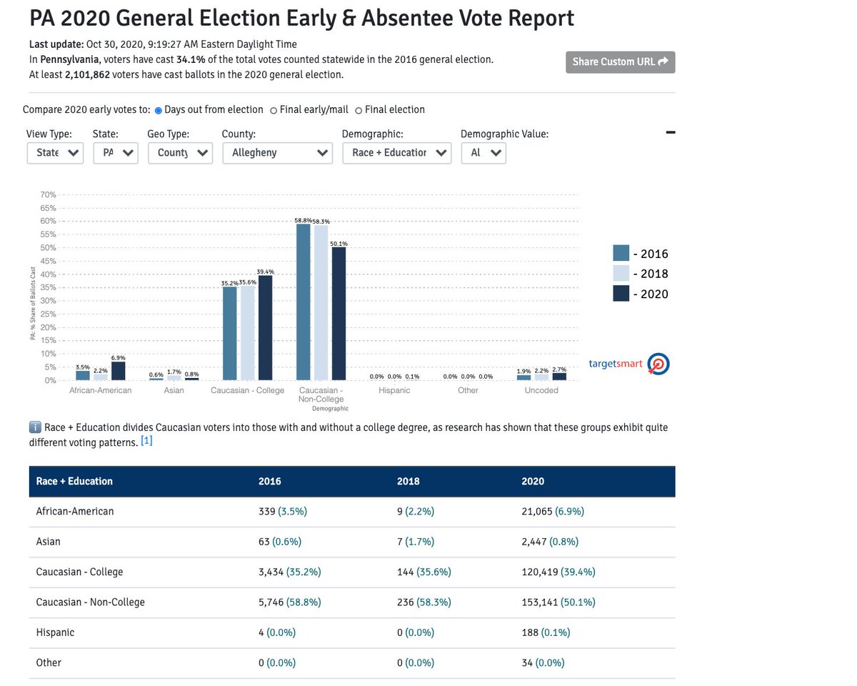 In Allegheny, Pittsburgh, the Black vote is up slightly from 3.5% to nearly 7% now in the early vote.