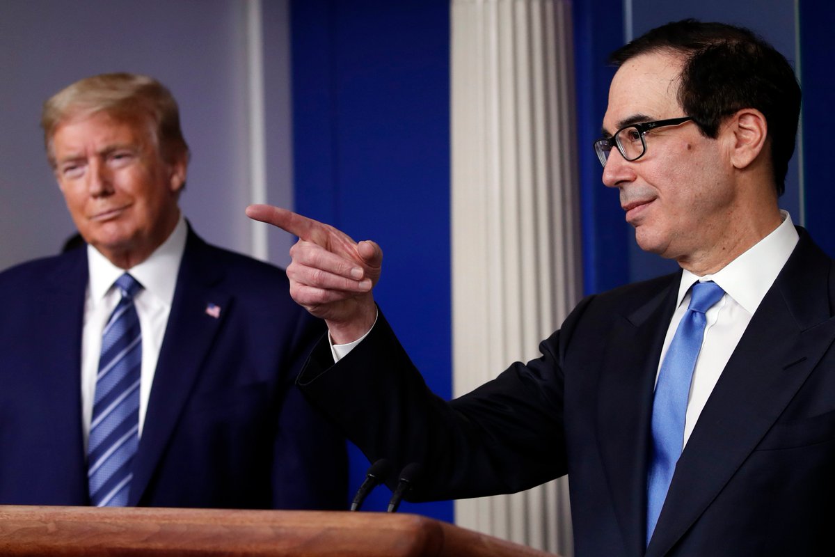 We need to keep an eye on Mnuchin. With all that noise going on by the nation& #39;s Toddler-In-Chief, his crooked-to-the-core Treasury Secy Steven Mnuchin is conducting biggest heist in history of humankind.