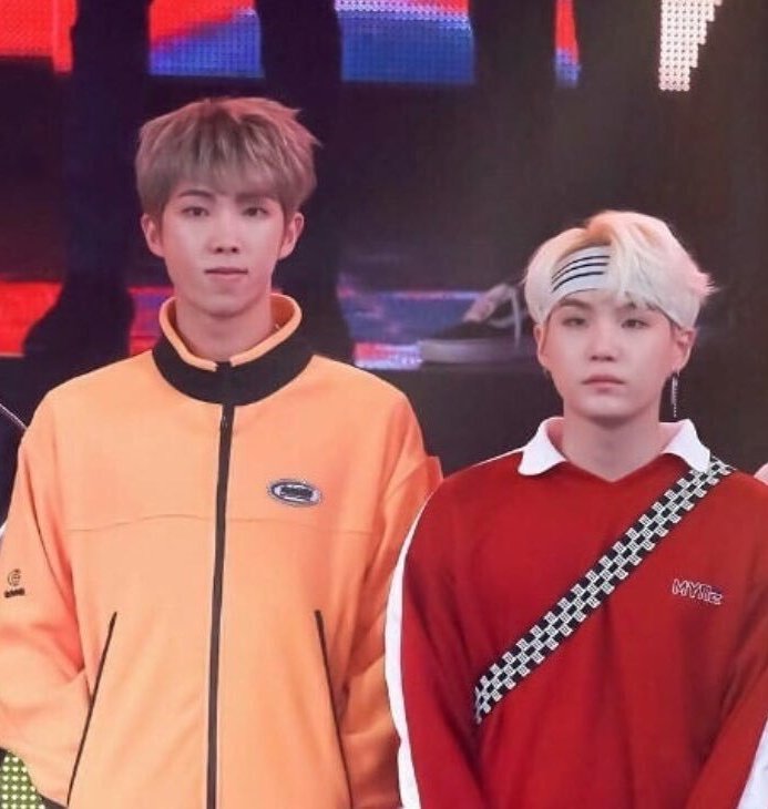 just yoongi doing his own things and there& #39;s namjoon looking giant beside him