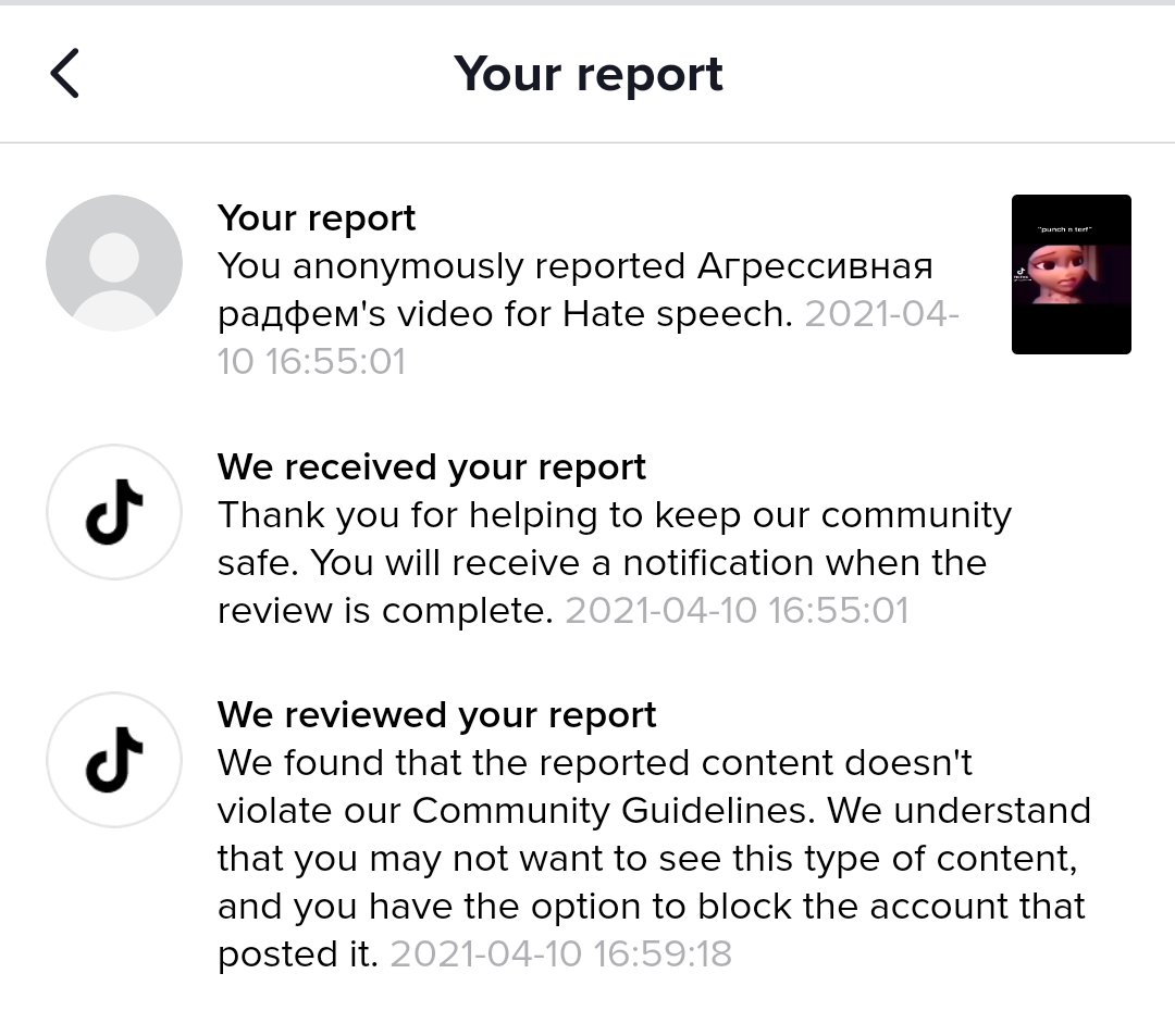 " title="TikTok don& #39;t take incitement to violence very seriously.In fact, they don& #39;t even seem to recognise it.Any advice on why that is @TikTokSupport ? https://abs.twimg.com/emoji/v2/... draggable="false" alt="🤷" title="Mit Schultern zuckende Person" aria-label="Emoji: Mit Schultern zuckende Person">">