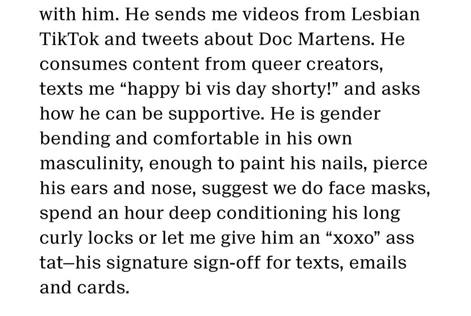 even if they were both bi...that’s a straight cis RELATIONSHIP. writing this during a time when Black Lives Matter and trans rights are being constantly attacked is fucking embarrassing. talk about biphobia/being queer with a bf without centering yourself as a victim. jesus...