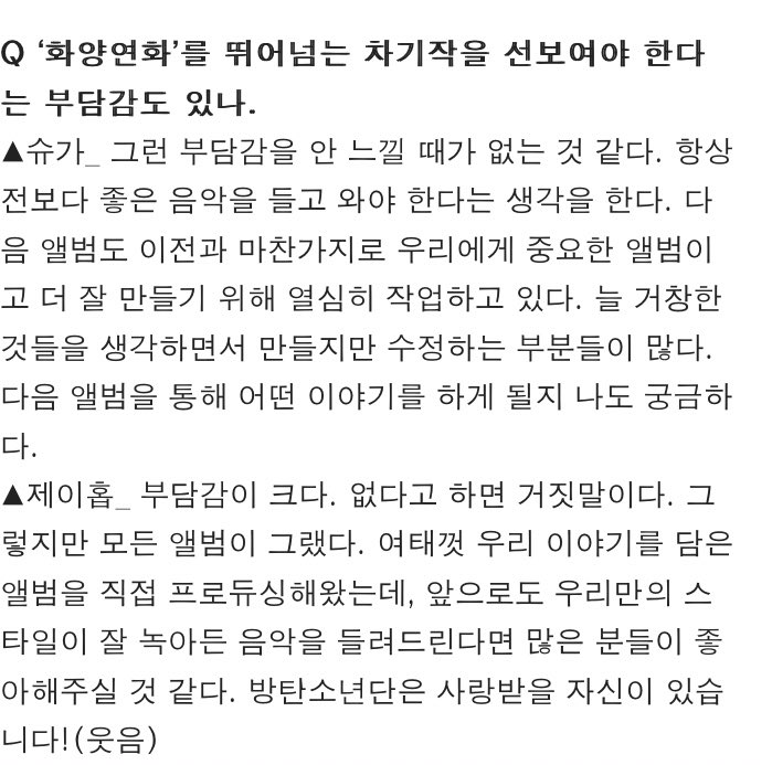 “There is great pressure. If I say there’s no pressure, then that’d be a lie. But every album is like that…BTS has the confidence to receive your love!”