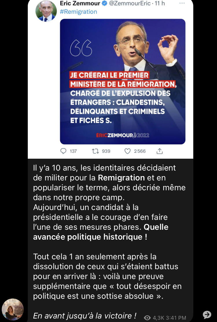 Avant-hier soir EZ a annoncé son intention de créer un "ministère de la Remigration"